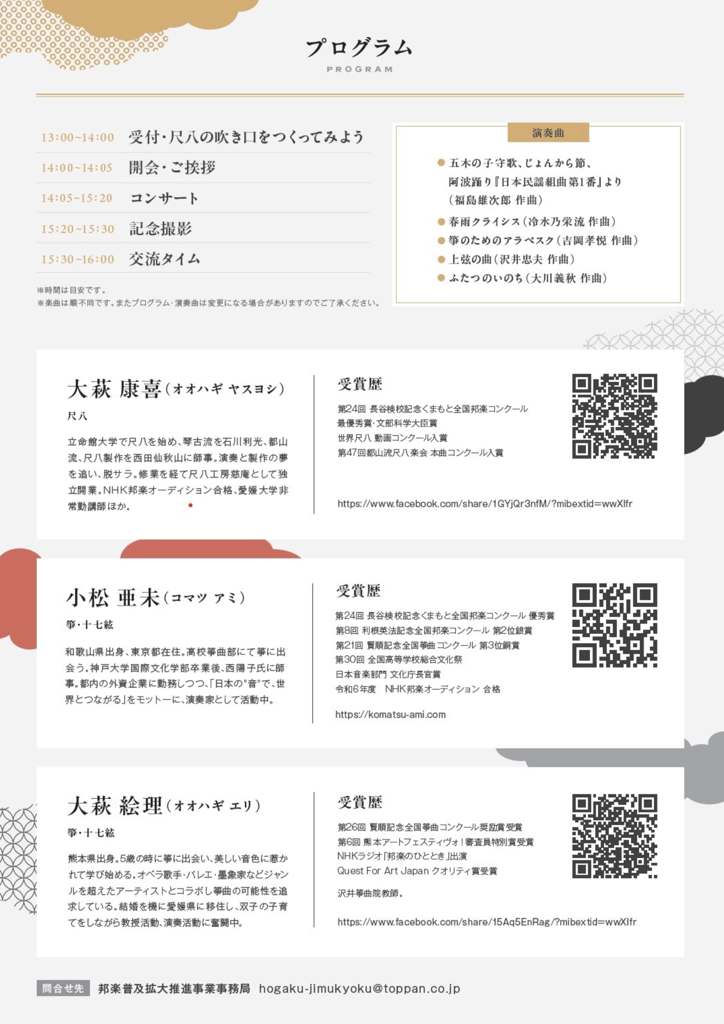 日時:2024年 2月 24日(月祝) 14:00 開演 (13:00〜14:00 受付・尺八製作体験)
